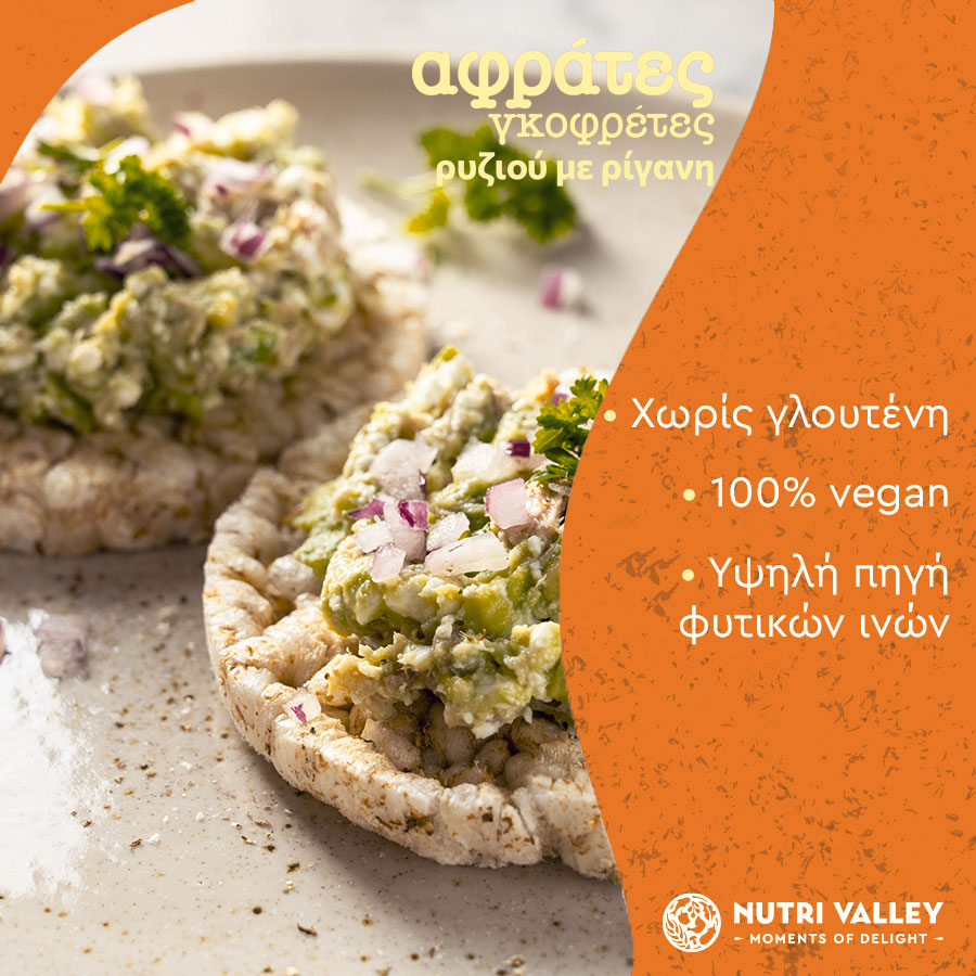 Crunchy rice cakes with oregano. Ingredients: Βrown rice (90%), olive oil, onion, salt, oregano (1%), parsley, chive.