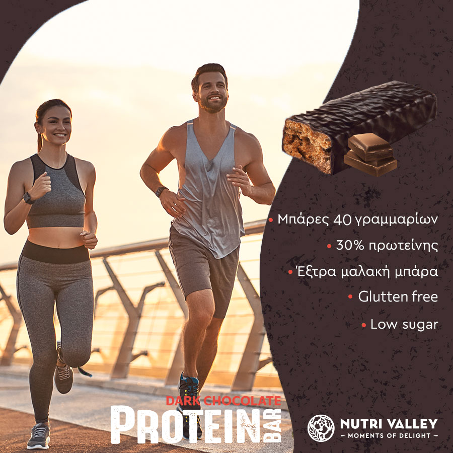 Μπάρα πρωτεΐνης με γεύση σοκολάτας γάλακτος. Με σάκχαρα και γλυκαντικά. Συστατικά: Μείγμα πρωτεϊνών 28,2% (απομονωμένη πρωτεΐνη σόγιας, πρωτεΐνη ορού γάλακτος), απομίμηση σοκολάτας γάλακτος με γλυκαντικά 24,8% (γλυκαντικά: μαλτιτόλη και γλυκοζίτες στεβιόλης, φυτικά λίπη πλήρως υδρογονωμένα (φοινικοπυρηνέλαιο), σκόνη κακάο μειωμένων λιπαρών 4%, ορός γάλακτος σε σκόνη, γάλα πλήρες σε σκόνη 2%,γαλακτωματοποιητής: λεκιθίνη σόγιας), σιρόπι από ολιγοσακχαρίτες φρουκτόζης (FOS), γλυκαντικά 15,7% (σιρόπι μαλτιτόλης, σιρόπι σορβιτόλης), κρέμα φουντουκιού με κακάο και γλυκαντικά 3,9% {γλυκαντικά (μαλτιτόλη και γλυκοζίτες στεβιόλης), φυτικά έλαια (ηλιέλαιο και βαμβακέλαιο σε μεταβαλλόμενες αναλογίες), φουντουκόπαστα 13%, σκόνη κακάο μειωμένων λιπαρών 10%, ορός γάλακτος σε σκόνη, πλήρες γάλα σε σκόνη, άπαχο γάλα σε σκόνη, βούτυρο κακάο, γαλακτωματοποιητής: λεκιθίνη σόγιας, αρωματικές ύλες}, φοινικέλαιο, σκόνη κακάο, καρύκευμα (δεξτρόζη, φρουκτόζη, φυσική αρωματική ύλη, λακτόζη, σκόνη κακάο, αντισυσσωματωτικό: διοξείδιο του πυριτίου), τραγανοί κόκκοι σόγιας με κακάο (πρωτεΐνη σόγιας, σιμιγδάλι ρυζιού, ζάχαρη, σκόνη κακάο μειωμένων λιπαρών, αλεύρι σόγιας, αλάτι, αρωματική ύλη), ζελατίνη φυσική, βούτυρο κακάο, αρωματική ύλη, γαλακτωματοποιητής: λεκιθίνη σόγιας, αντιοξειδωτικό: εκχύλισμα τοκοφερολών. Η υπερβολική κατανάλωση μπορεί να έχει υπακτική δράση.br>