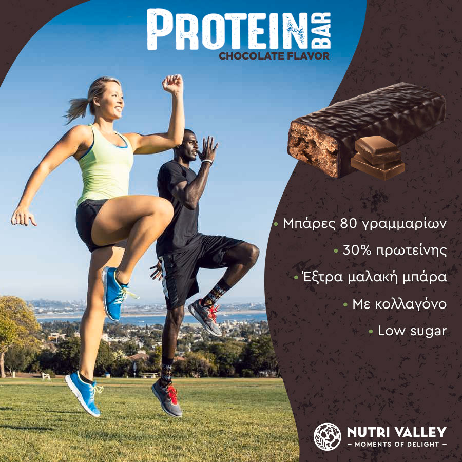 Μπάρα πρωτεΐνης με γεύση σοκολάτας γάλακτος. Με σάκχαρα και γλυκαντικά. Συστατικά: Μείγμα πρωτεϊνών 28,2% (απομονωμένη πρωτεΐνη σόγιας, πρωτεΐνη ορού γάλακτος), απομίμηση σοκολάτας γάλακτος με γλυκαντικά 24,8% (γλυκαντικά: μαλτιτόλη και γλυκοζίτες στεβιόλης, φυτικά λίπη πλήρως υδρογονωμένα (φοινικοπυρηνέλαιο), σκόνη κακάο μειωμένων λιπαρών 4%, ορός γάλακτος σε σκόνη, γάλα πλήρες σε σκόνη 2%,γαλακτωματοποιητής: λεκιθίνη σόγιας), σιρόπι από ολιγοσακχαρίτες φρουκτόζης (FOS), γλυκαντικά 15,7% (σιρόπι μαλτιτόλης, σιρόπι σορβιτόλης), κρέμα φουντουκιού με κακάο και γλυκαντικά 3,9% {γλυκαντικά (μαλτιτόλη και γλυκοζίτες στεβιόλης), φυτικά έλαια (ηλιέλαιο και βαμβακέλαιο σε μεταβαλλόμενες αναλογίες), φουντουκόπαστα 13%, σκόνη κακάο μειωμένων λιπαρών 10%, ορός γάλακτος σε σκόνη, πλήρες γάλα σε σκόνη, άπαχο γάλα σε σκόνη, βούτυρο κακάο, γαλακτωματοποιητής: λεκιθίνη σόγιας, αρωματικές ύλες}, φοινικέλαιο, σκόνη κακάο, καρύκευμα (δεξτρόζη, φρουκτόζη, φυσική αρωματική ύλη, λακτόζη, σκόνη κακάο, αντισυσσωματωτικό: διοξείδιο του πυριτίου), τραγανοί κόκκοι σόγιας με κακάο (πρωτεΐνη σόγιας, σιμιγδάλι ρυζιού, ζάχαρη, σκόνη κακάο μειωμένων λιπαρών, αλεύρι σόγιας, αλάτι, αρωματική ύλη), ζελατίνη φυσική, βούτυρο κακάο, αρωματική ύλη, γαλακτωματοποιητής: λεκιθίνη σόγιας, αντιοξειδωτικό: εκχύλισμα τοκοφερολών. Η υπερβολική κατανάλωση μπορεί να έχει υπακτική δράση.br>