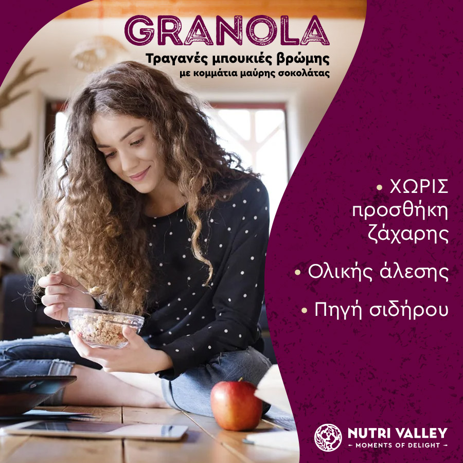 Νιφάδες βρώμης ολικής άλεσης 53%, Γλυκαντικό: Μαλτιτόλη, Ηλιέλαιο, Κομμάτια μαύρης σοκολάτας με γλυκαντικό 7% (Κακαόμαζα, Γλυκαντικό: μαλτιτόλη, Βούτυρο κακάο, Γαλακτωματοποιητής: λεκιθίνη σόγιας, Φυσική αρωματική ύλη βανίλιας), Ολιγοφρουκτόζη, Αλεύρι ρυζιού, Αντιοξειδωτικό: εκχύλισμα πλούσιο σε τοκοφερόλες, Γαλακτωματοποιητής: λεκιθίνη ηλίανθου, Αρωματικές ύλες, Αλάτι.